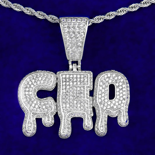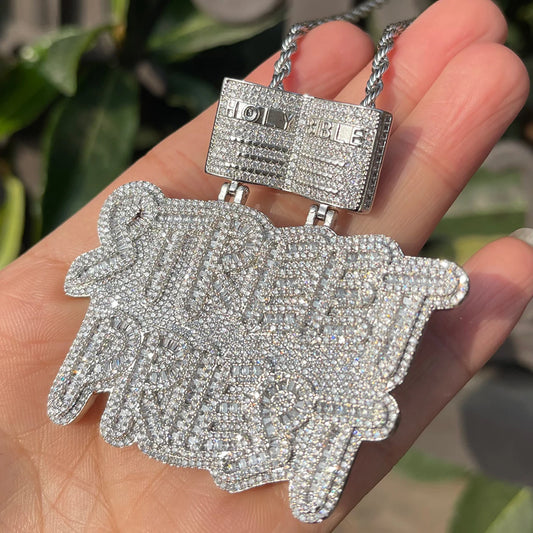 Bubble Letter Iced Out Street Priest Pendant Necklace Prong Setting Cubic Zirconia Real Gold Plated Hip Hop Fashion Jewelry