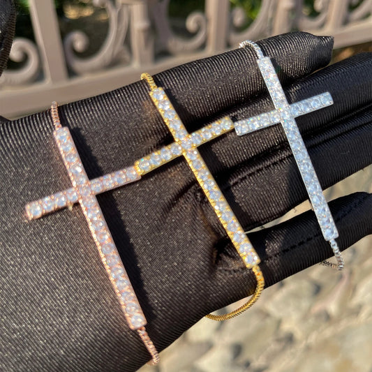 Bubble Letter Cross Bracelets for Women Real Copper Gold Plated Hip Hop Jewelry Adjustable Charms