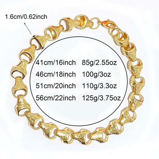 Bubble Letter 20mm Alternate Ornate Filigree Belcher Pattern Link Necklace Chain Real Gold Plated PVD Plate Hip Hop Jewelry