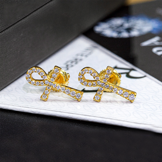 Bubble Letter Silver Moissanite VVS Ankh Cross Stud Earring for Men Hip Hop Jewelry