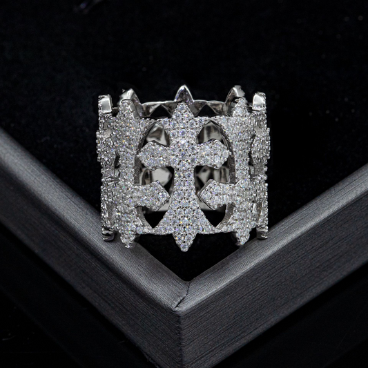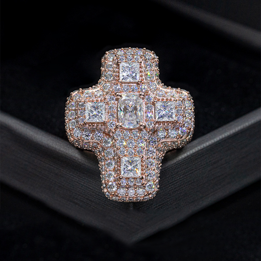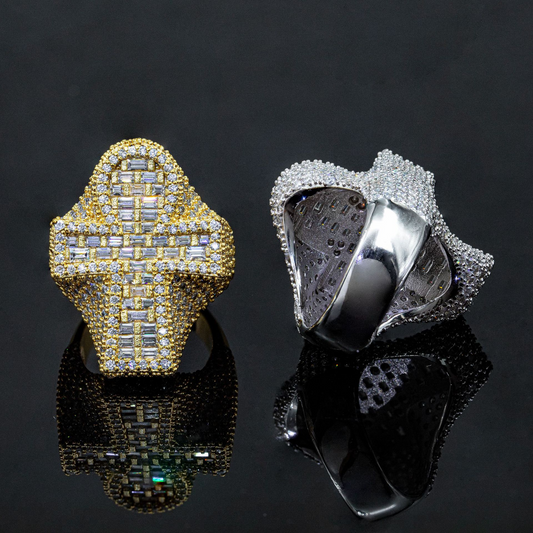 Bubble Letter Silver Moissanite VVS Baguette Flower Cross Ring for Men Hip Hop Jewelry