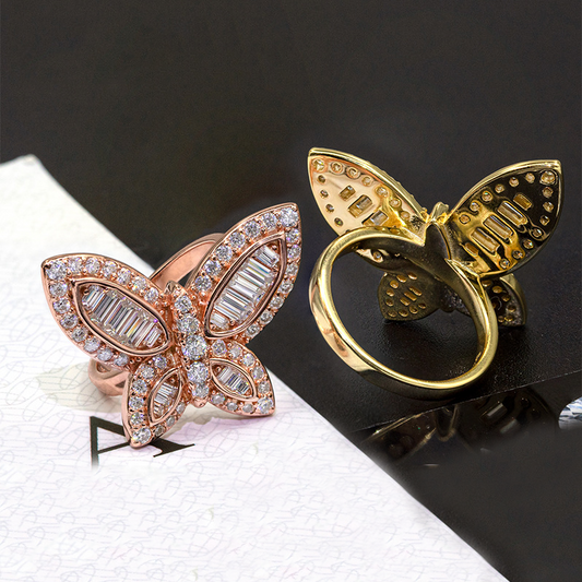 Bubble Letter Silver Moissanite VVS Baguette Butterfly for Women Hip Hop Jewelry