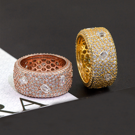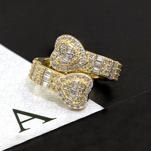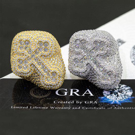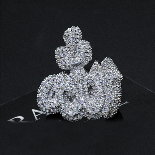 Bubble Letter Silver Moissanite Two Layers Ring for Men Hip Hop Jewelry