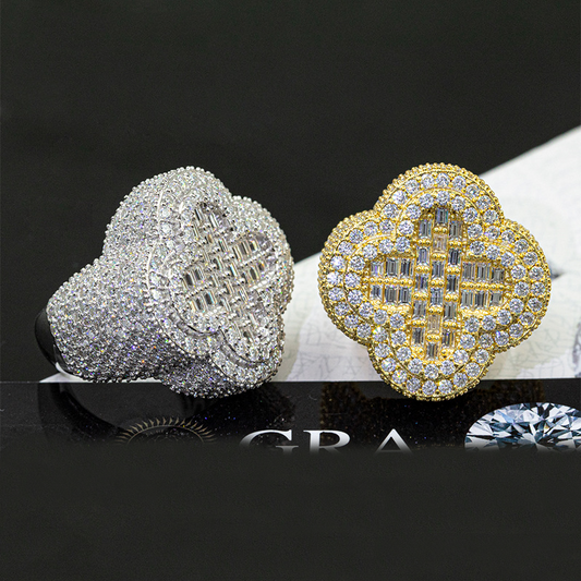 Bubble Letter Silver Moissanite VVS Baguette Flower Ring for Women Hip Hop Jewelry