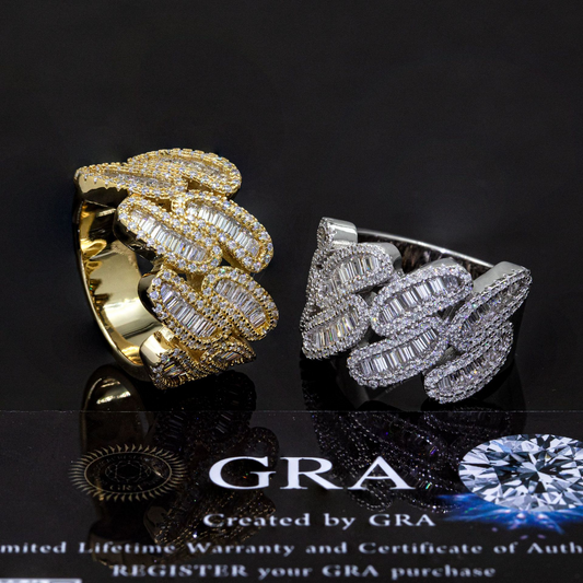 Bubble Letter Silver Moissanite VVS Baguette Cuban Ring for Men Hip Hop Jewelry