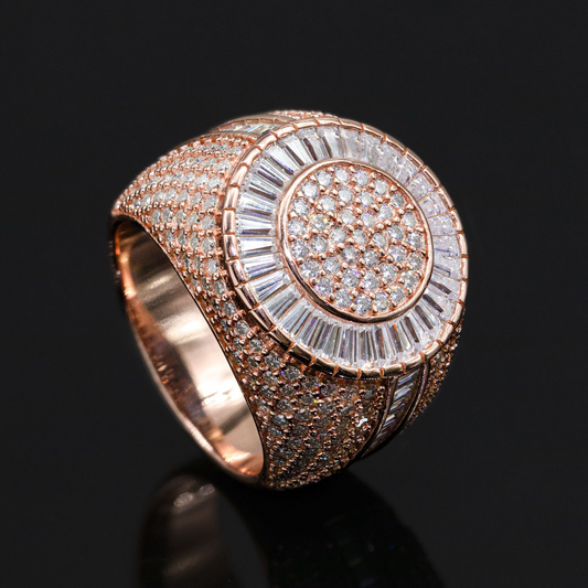 Bubble Letter Silver Moissanite VVS Baguette Circle Ring for Men Hip Hop Jewelry