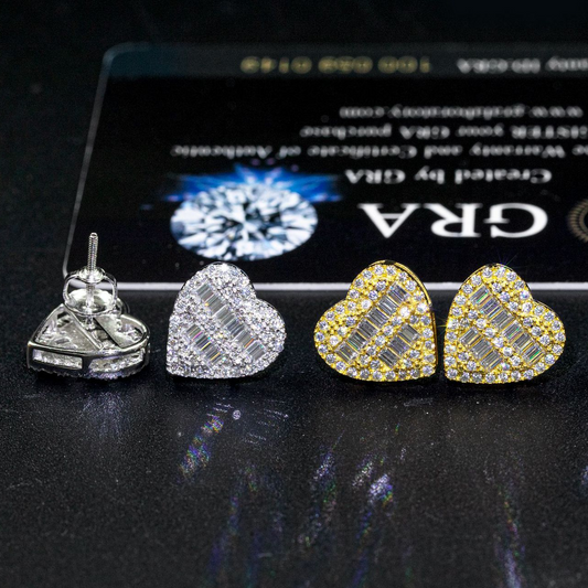 Bubble Letter Silver Moissanite VVS Baguette Heart Stud Earring for Men Hip Hop Jewelry