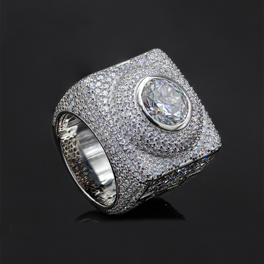 Bubble Letter Silver Moissanite VVS Fully Iced Big Ring for Men Hip Hop Jewelry