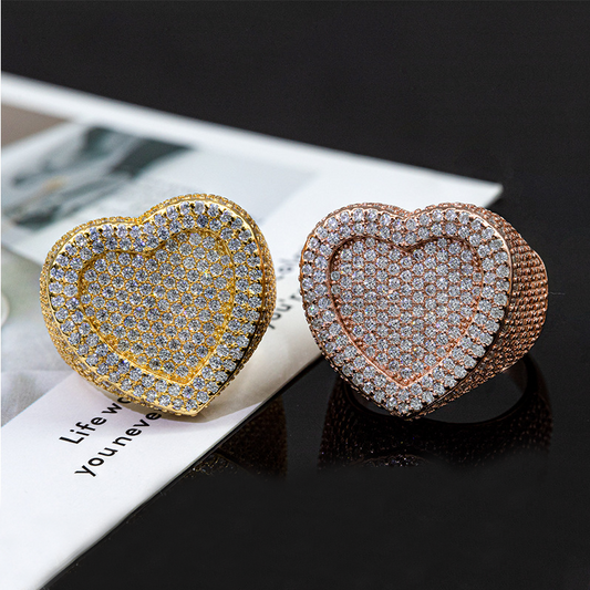 Bubble Letter Silver Moissanite VVS Heart Ring for Women Hip Hop Jewelry