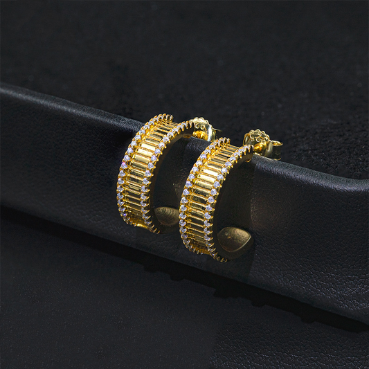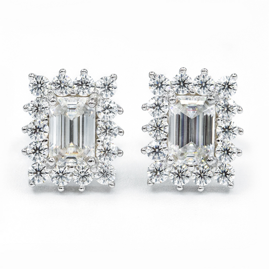 Bubble Letter Silver Moissanite VVS Edge Baguette Stud Earring for Men Hip Hop Jewelry