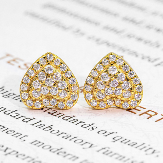 Bubble Letter Silver Moissanite VVS Double Heart Stud Earring for Men Hip Hop Jewelry