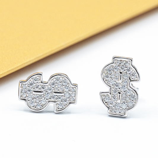 Bubble Letter Silver Moissanite VVS Dollar Sign Stud Earring for Women Hip Hop Jewelry