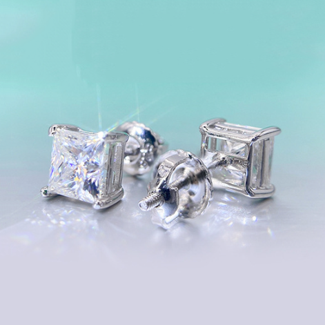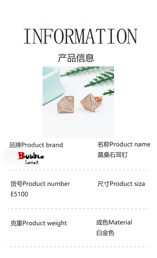 Bubble Letter Silver Moissanite VVS Cubic Zirconia Square Stud Earring for Men Hip Hop Jewelry