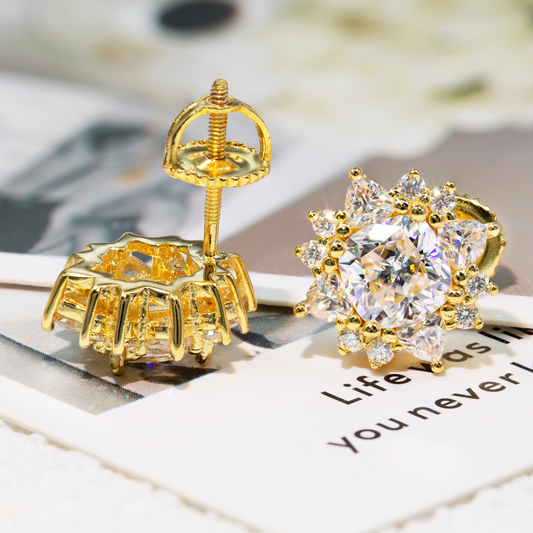Bubble Letter Silver Moissanite VVS Edge Flower Stud Earring for Men Hip Hop Jewelry
