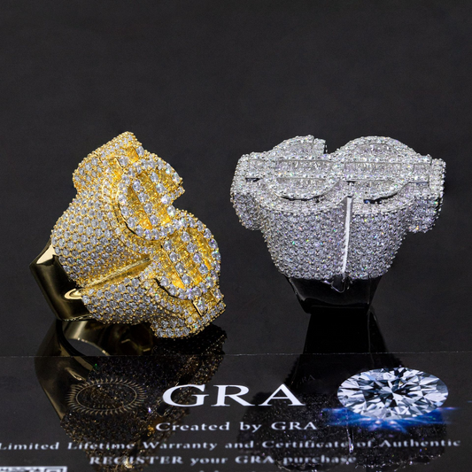 Bubble Letter Silver Moissanite VVS Dollar Bag Ring for Men Hip Hop Jewelry