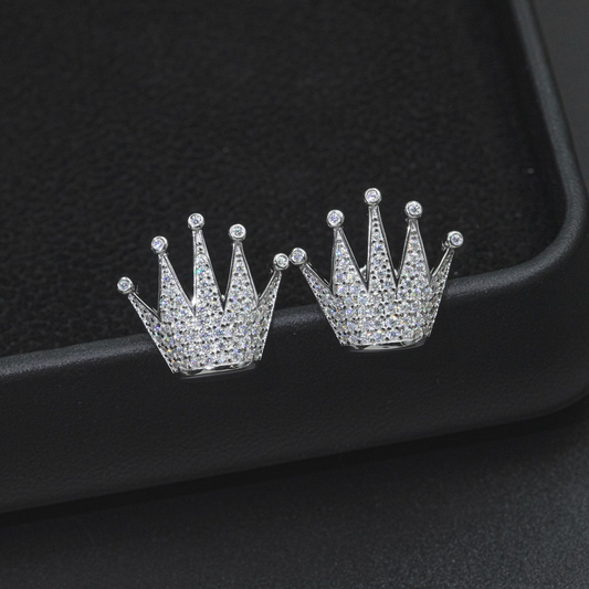 Bubble Letter Silver Moissanite VVS Crown Stud Earring for Men Hip Hop Jewelry