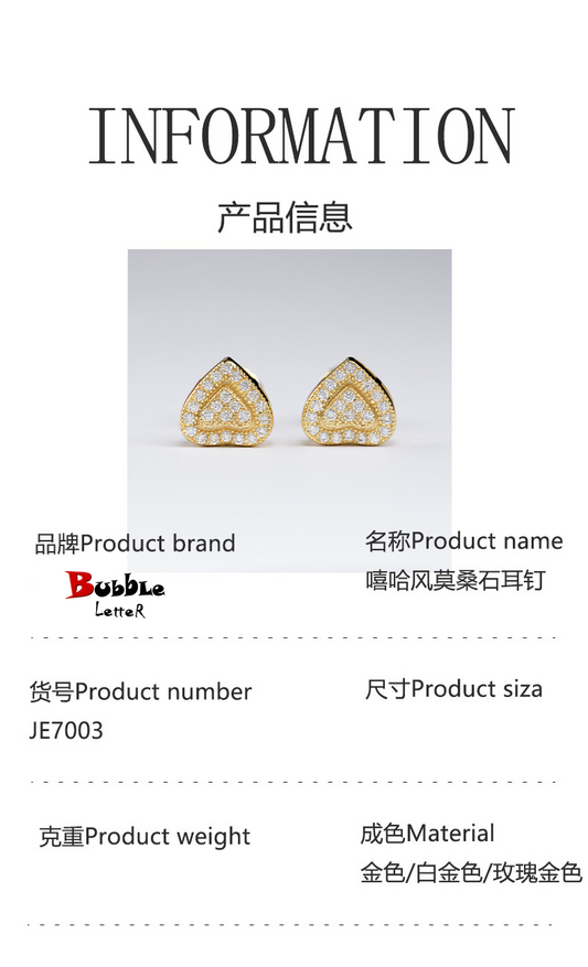 Bubble Letter Silver Moissanite VVS Double Heart Stud Earring for Women Hip Hop Jewelry