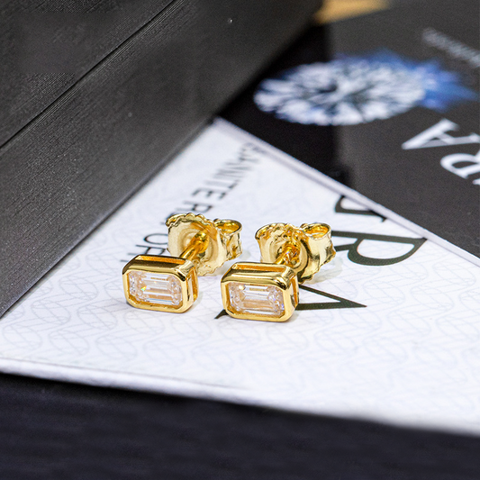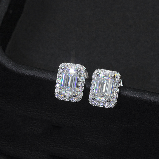 Bubble Letter Silver Moissanite VVS Rectangle Baguette Stud Earring for Men Hip Hop Jewelry
