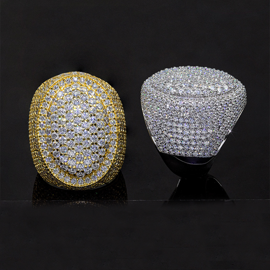 Bubble Letter Silver Moissanite VVS Oval Shape Two Layers Ring for Men Hip Hop Jewelry