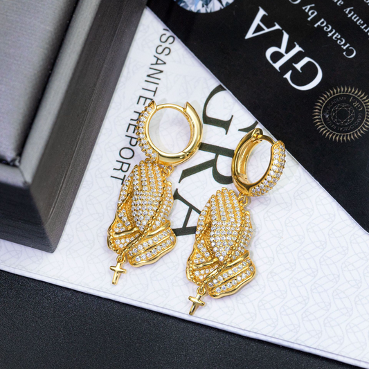 Bubble Letter Silver Moissanite VVS Pray Cross Stud Earring for Men Hip Hop Jewelry