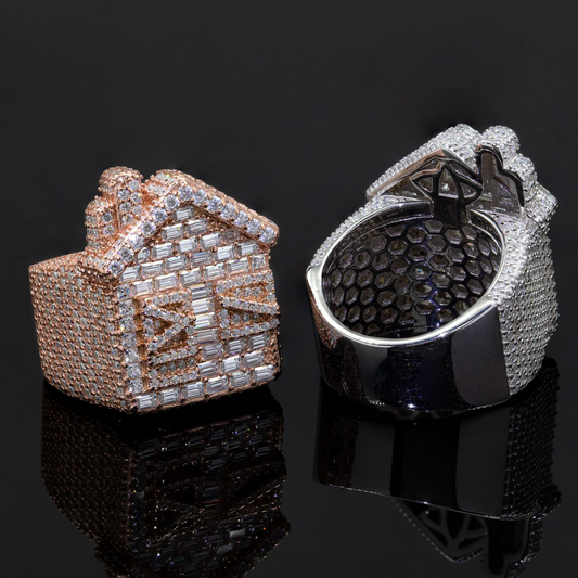 Bubble Letter Silver Moissanite VVS House Ring for Men Hip Hop Jewelry