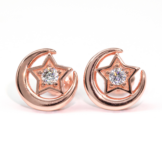 Bubble Letter Silver Moissanite VVS Moon Star Stud Earring for Women Hip Hop Jewelry