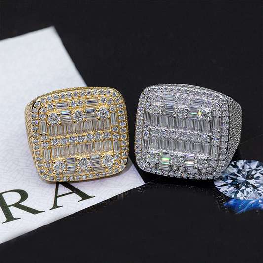 Bubble Letter Silver Moissanite VVS Square Top Ring for Men Hip Hop Jewelry