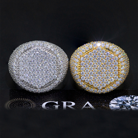 Bubble Letter Silver Moissanite VVS Sun Circle Men Ring Hip Hop Jewelry