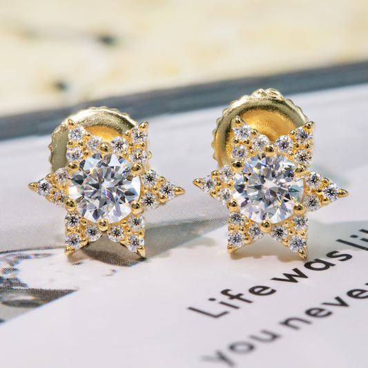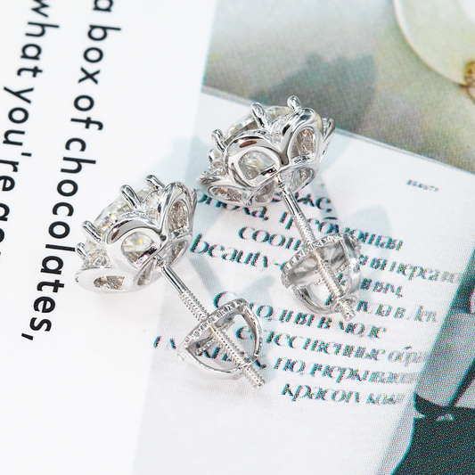 Bubble Letter Silver Moissanite VVS Sun Flower Stud Earring for Men Hip Hop Jewelry