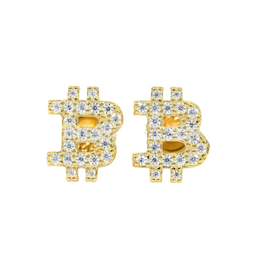 Bubble Letter Silver Moissanite VVS Tennis Bitcoin Stud Earring for Women Hip Hop Jewelry
