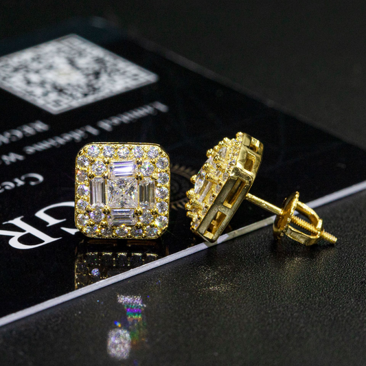 Bubble Letter Silver Moissanite VVS Square Baguette Stud Earring for Men Hip Hop Jewelry