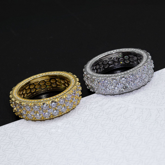 Bubble Letter Silver Moissanite VVS three lines Tennis Ring for Men Hip Hop Jewelry