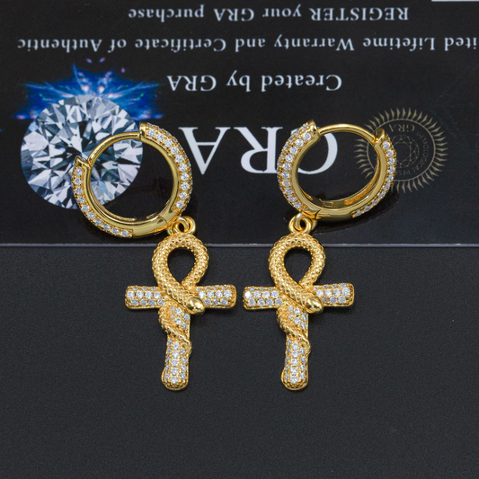 Bubble Letter Silver Moissanite VVS Snake Cross Eardrop Earring for Women Hip Hop Jewelry