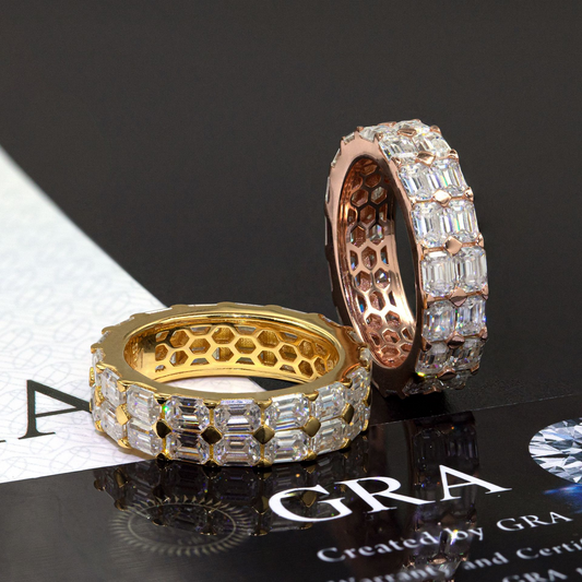 Bubble Letter Silver Moissanite VVS Two Rows Baguette Ring for Men Hip Hop Jewelry