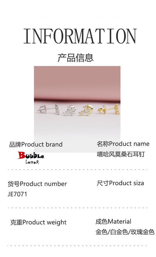 Bubble Letter Silver Moissanite VVS Stud Earring for Men Hip Hop Jewelry