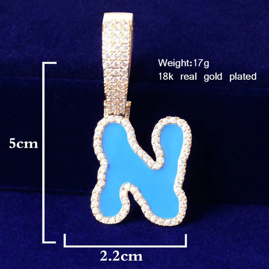 Solid Back Single Blue oil Bubble Letters Pendant Necklaces For Men Women Gold Color AAAA Cubic Zircon Hip Hop Jewelry