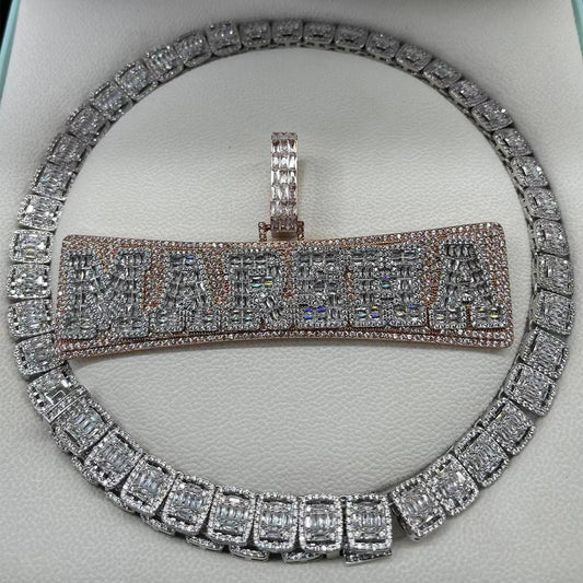 Bubble Letter Baguette Chunky Custom Name Necklace for Men Iced Out Pendant Real Gold Plated Hip Hop Rock Fashion Jewelry