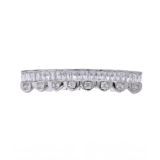 Bubble Letter Baguette Edition Top Model Luxurious Look Teeth Grillz White Gold Plated Hip Hop Jewelry 2023 Drop Shipping Trend