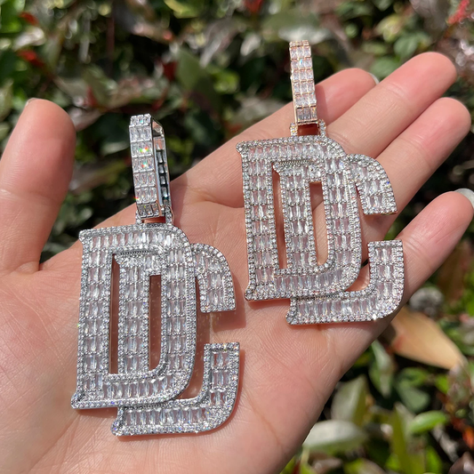 Bubble Letter Baguette Initial Cursive Jewelry Iced Out Pendant Prong Setting Made By Hand Customized Name Necklace for Men