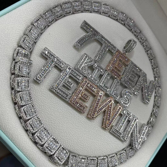 Bubble Letter Baguette Customized Jewelry Name Plated Personalized Necklace for Men Iced Out Pendant Hip Hop Charms