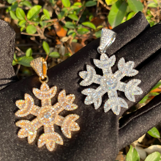 Bubble Letter Baguette Snow Flower Necklace for Men Iced Out Pendant Real Gold Plated Hip Hop Fashion Jewelry Bling Charms