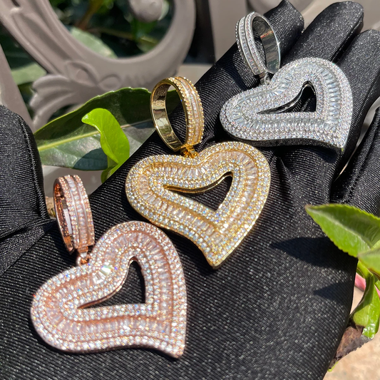 Bubble Letter Baguette Open Love Heart Necklace Pendant for Women Iced Out Charms Glossy Girl Fashion Jewelry