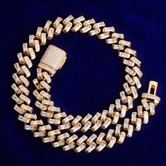 Bubble Letter Baguette Necklace Miami Cuban Link Chain for Men Gold Color Hip Hop Fashion Jewelry Free Shipping Items