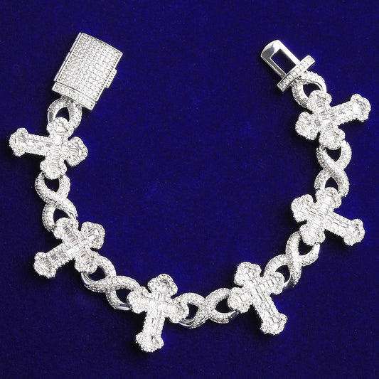 Bubble Letter Iced Out Baguette Cross Infinity Link Bracelet for Men 5A Cubic Zirconia Real Gold Plated Hip Hop Jewelry