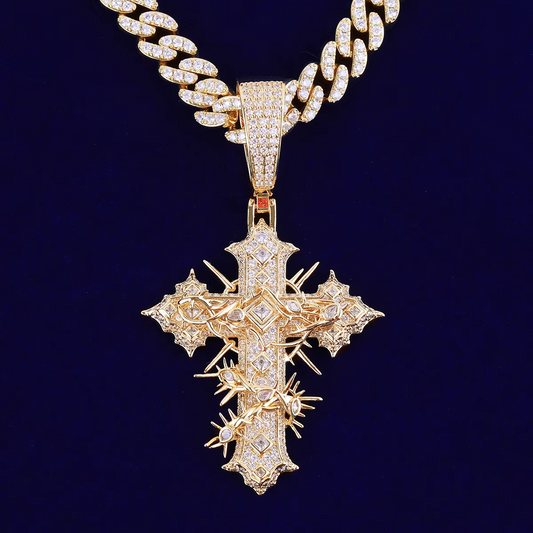 Bubble Letter Iced Out Rattan Cross for Men Prong Setting Real Gold Plated Hip Hop Jewelry