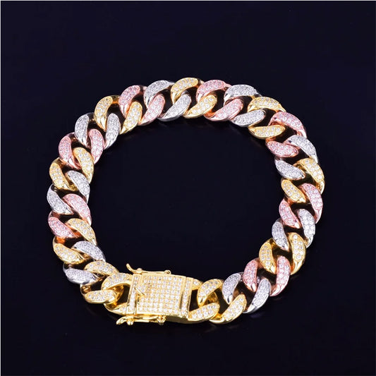 12MM Mixed Color Cuban Chain Bracelet Men's Hip hop Jewelry Iced Out AAA Zirconia Colorful Bracelet 7" 8"