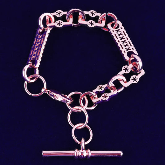 Bubble Letter Star Bar T Bar Clasp Bracelet for Women Gold Plated Real Coper Hip Hop Jewelry