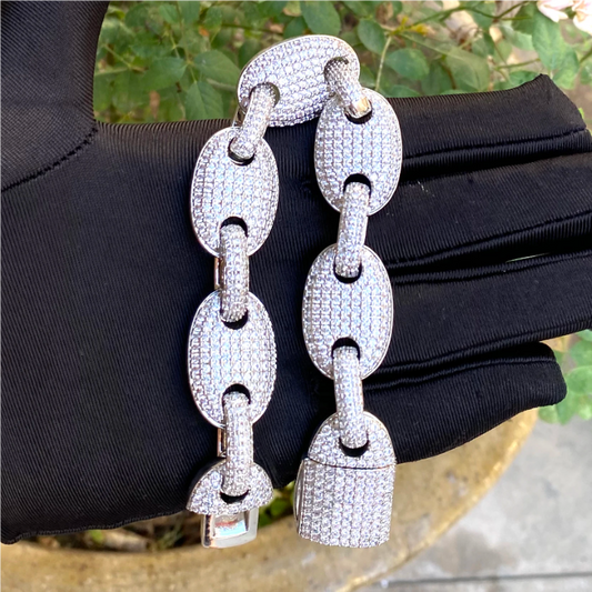 Bubble Letter Iced Out GYSPY Belcher Bracelet for Men Prong Setting Albert Clasp Hip Hop Jewelry