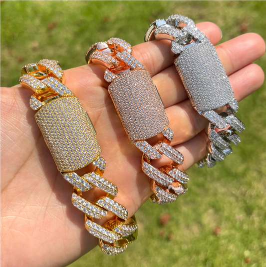 18mm Miami Cuban Bracelet Chain Men's Hip Hop Link Solid Back Copper Full Zircon Fashion Rock Jewelry