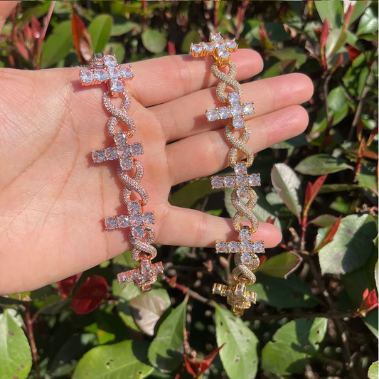 Bubble Letter Iced Out Bracelet for Women Cross Infinity Prong Setting Real Gold Plated Hip Hop Jewelry